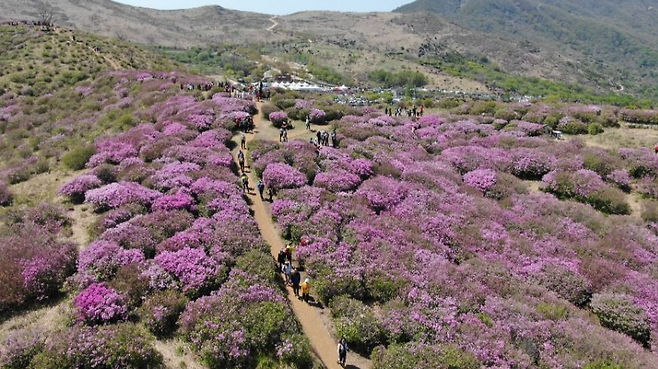 하이라이트: 해발 850m 고지에 펼쳐진 전국 최대 규모(약 30ha)의 철쭉 군락지 🌺