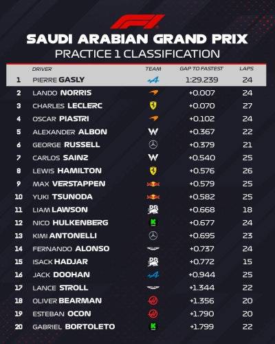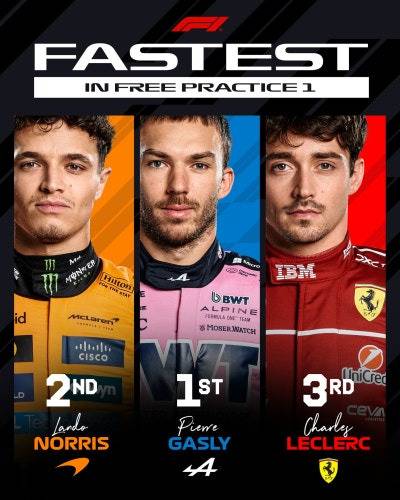 FP1에서는 알핀의 가슬리가 1분 29초 239로 가장 빠른 랩을 기록하며 이변을 연출했습니다.