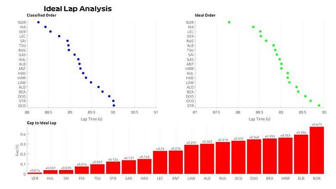 맥라렌을 기준으로 중속 코너에서는 레드불과 메르세데스가, 고속 코너에서는 페라리가 더 빠른 것으로 분석되었습니다. 특히 직선 구간에서는 자우버가 무려 0.15초나 더 빠른 속도를 기록하며 놀라움을 자아냈습니다. 😲