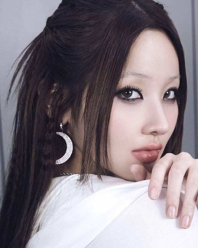 여기에 하얗고 흐리게 연출한 눈썹, 글로시 립, 스트레이트 헤어로 완성된 메이크업은 2000년대 클럽 키드 감성을 재현하며 트렌디함과 비주얼 임팩트를 모두 챙겼습니다.