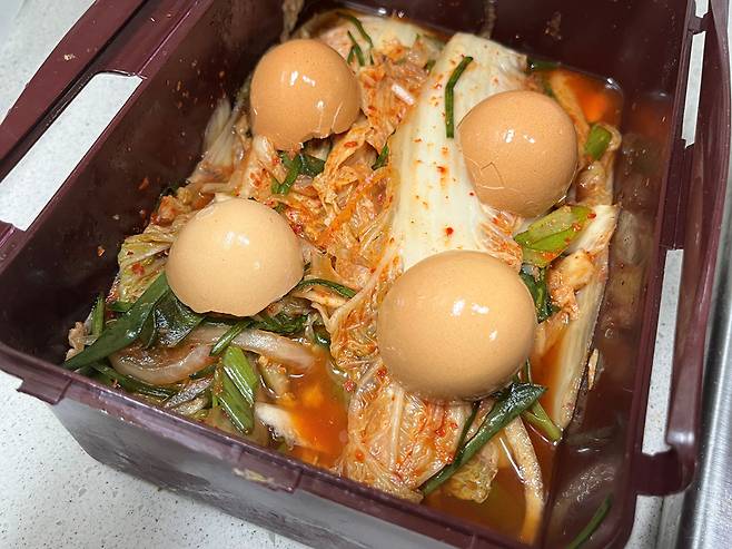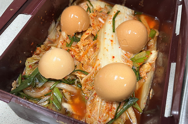 이렇게 하면 계란의 탄산칼슘 성분이 김치 속 산도를 부드럽게 조절해 발효 속도를 늦춥니다. 그 결과 김치가 너무 빨리 시어버리는 것을 막아주고, 배추와 무의 아삭한 식감이 오래 유지됩니다.