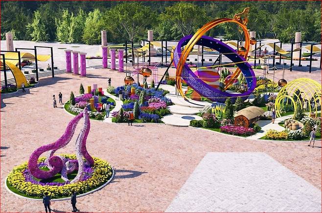 이번 박람회의 상징인 주제 광장에는 높이 13m, 폭 26m에 달하는 거대한 조형물 '시간여행자의 정원'이 들어섭니다. 조선 시대 천문 기구인 '혼천의'를 모티브로 한 이 시설물은, 회전하는 구형 꽃 장식을 통해 세월의 흐름을 시각적으로 표현해 냅니다.