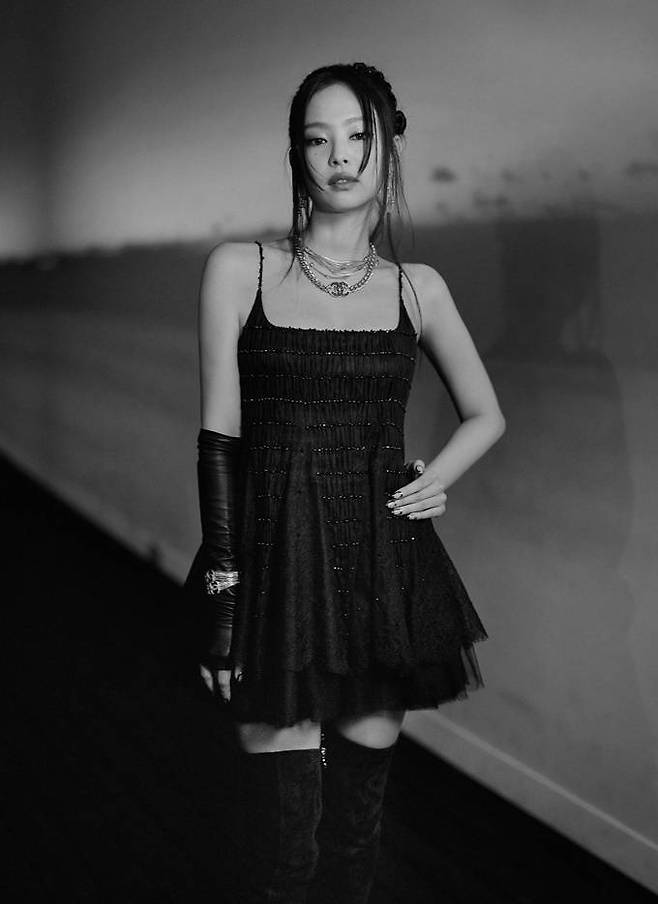 1. 블랙핑크 제니는 샤넬 패션쇼에서 블랙 캐미솔 미니 드레스, 싸이-하이 부츠, 싱글 핑거리스 오페라 장갑을 매치한 우아한 발레리나룩으로 매혹적인 자태를 뽐냈다.