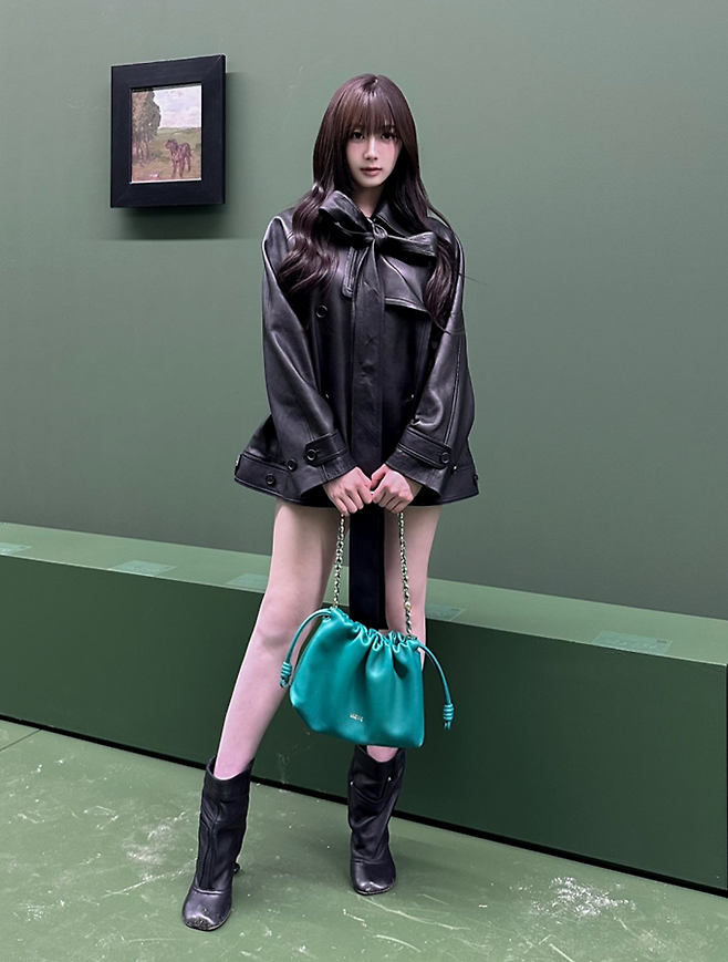 6. 에스파 지젤은 로에베 패션쇼에서 리본 네크라인 장식의 브라운 가죽 하프 코트로 연출한 하의실종룩으로 K팝 요정의 존재감을 폭발시켰다.