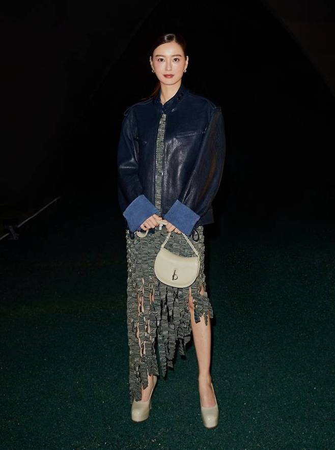 11. 배우 정유미는 버버리 2024 F/W 패션쇼에 프린지 디테일 원피스와 라운드넥의 블루 가죽 재킷을 매치한 우아한 세퍼레이트룩으로 한류 여신의 눈부신 미모를 빛냈다.