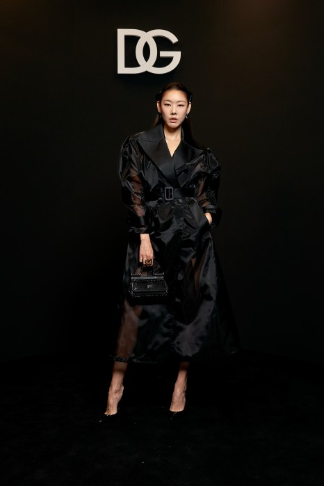 19. 모델 한혜진은 돌체앤가바나 2024 F/W 쇼에서 은은하게 속이 비치는 블랙 시스루 트렌치 코트룩으로 당당하고 자신감있는 애티튜드로 시선을 강탈했다.