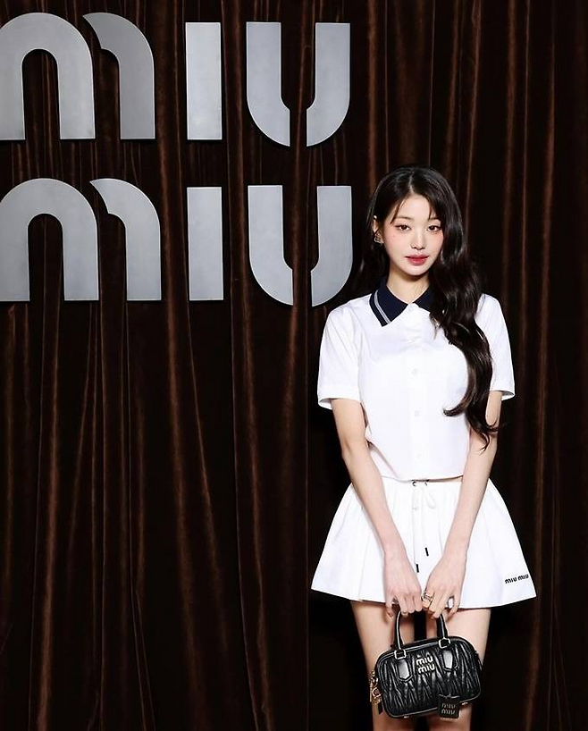 7. 아이브 장원영은 미우 미우 2024 F/W 쇼에서 교복이 연상되는 화이트 재킷과 네오프렌 쇼츠를 매치한 쿨한 Y2K 프레피룩으로 요정같은 미모를 빛냈다.