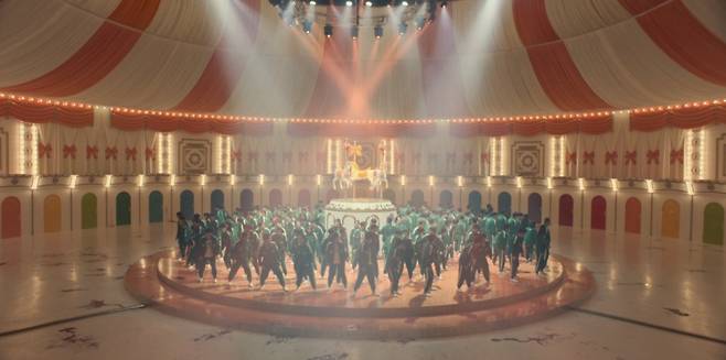 또한 초대형 원판 세트는 500평 면적으로 "CG(컴퓨터그래픽)없이 만들어보자는 생각이었다"면서 "공을 많이 들였다. 반짝이는 전구들도 1000개 정도 달았다. 시간이 많이 걸렸는데, 배우들도 촬영하면서 그 공간을 정말 좋아해 줘서 행복했다"고 미소 지었다.