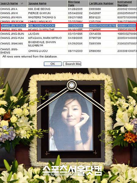 혼인신고는 한 달 뒤인 8월 28일, 서울 성북구청에서 이루어졌다. 그러나 안타깝게도 그로부터 단 3일 후, 장진영은 향년 37세의 나이로 세상을 떠났다.