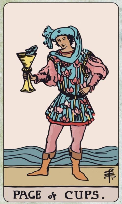 타로카드 중 "page of cups" 이라는 카드가 있다. 젊은 남자(시종)가 컵을 들고 호기심 가득한 표정으로 서 있는 그림이다. 마음은 여리고 감수성있는 예술적인 인물의 상징이라 할 수 있으며, 천진난만하고 순수한 상태라고 볼 수 있다. 대단한 것을 이루지는 못해도 지금 현재의 상태에 만족하고 기뻐하며 현실적인 완성보다는 낙관적 기대감을 갖고 있다. 절판된 책 『사이판 한달살기』가 내겐 "page of cups"(시종 컵)의 이미지 같다. 이후 EBS방송에서 '여행 육아' 의 방송에 나오기도 했고, 여러 교육 잡지에 기고한 경험도 나름 의미 있었다.