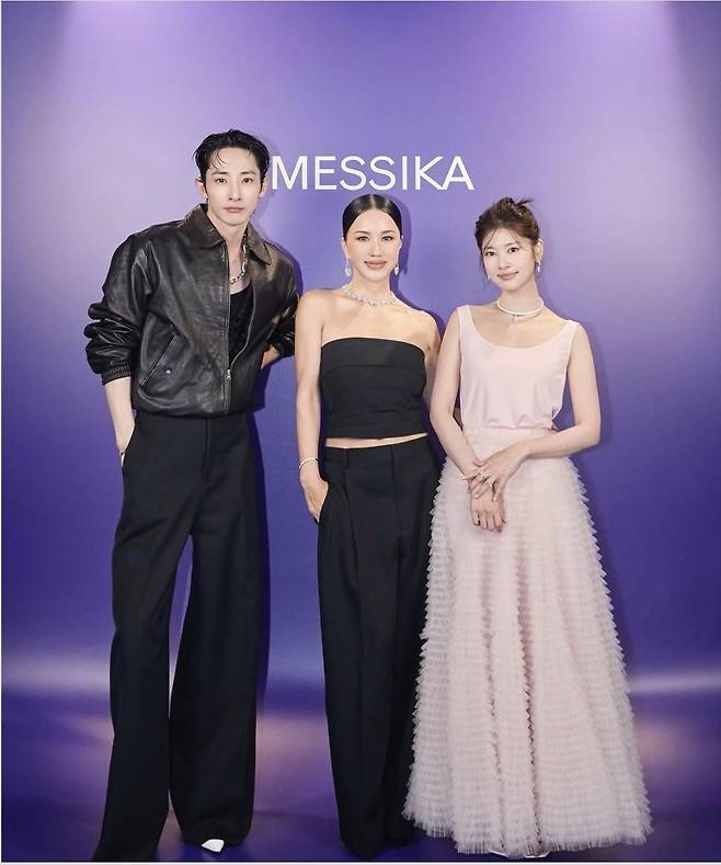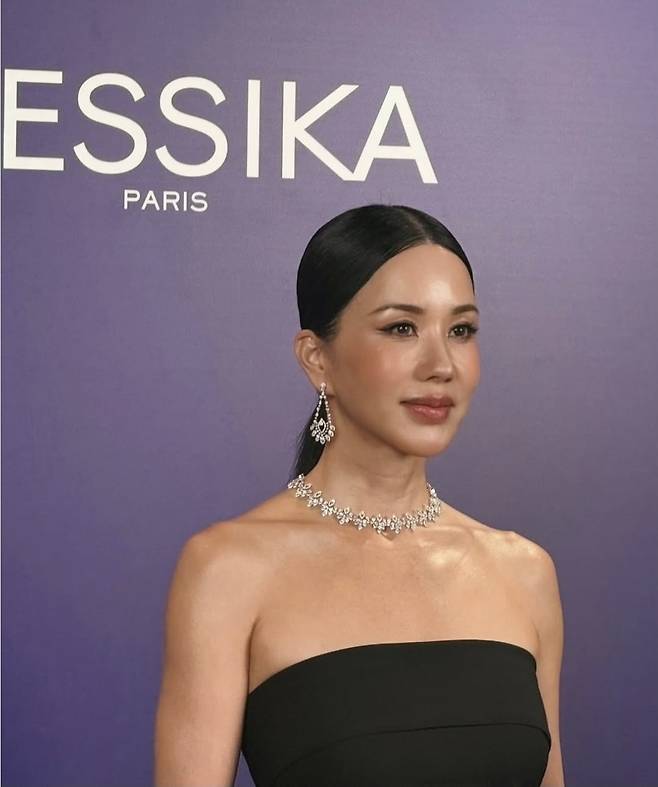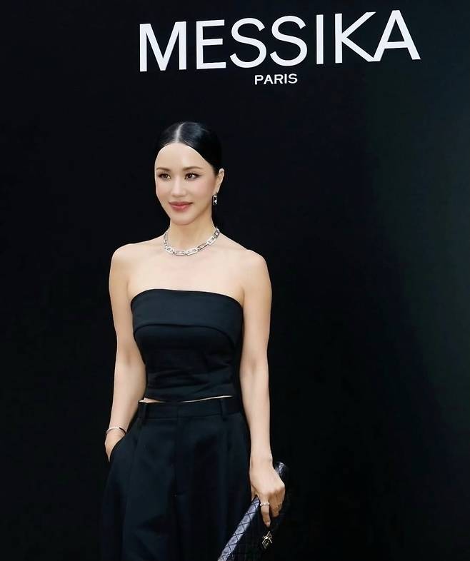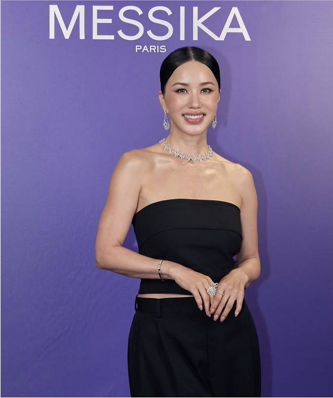 엄정화는 어깨라인이 돋보이는 튜브톱 상의에 포멀한 블랙 팬츠를 매치해 절제된 우아함을 표현했으며, 주얼리 포인트로는 메시카의 다이아몬드 네크리스와 드롭형 귀걸이, 볼드한 반지를 선택해 고급스러운 광채를 더했습니다.