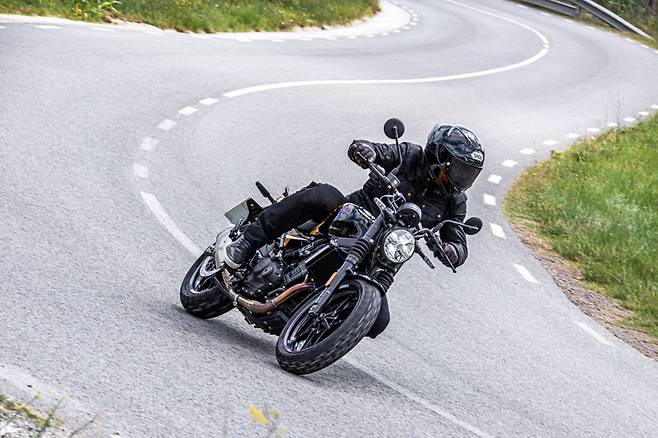 서스펜션 세팅도 만족스럽다. 특히 프런트 포크의 댐핑이 제동 초기에 민감하게 반응하지 않고 지긋하게 앞바퀴에 하중을 실어주는 점이 마음에 든다. 리어는 큰 존재감이 없었는데 승차감이 좋으면서 존재감이 적은 서스펜션이 묵묵히 제 일을 하고 있다는 의미이기도 하다. 서스펜션 작동 범위가 앞 140, 뒤 150으로 온로드 모델치고 긴 편으로 쉽게 한계가 오지 않고 움직임에 낭창임도 없으니 승차감과 운동성이 덩달아 높아지는 느낌이다. 전륜에 싱글디스크지만 브레이크 제동 성능은 충분했다. 프런트 브레이크의 초기 응답은 부드럽지만 레버에 가하는 힘과 제동력이 고르게 상승하는 느낌이라 다루기 편하다. 전후 ABS가 적용되어 있는데 리어의 ABS개입이 조금 늦는 편이라 급제동시 리어의 자세가 다소 흐트러지는 일이 있었다. 아무래도 노면이 좋지 않은 상황에서 제동력을 최대한 끌어내기 위한 세팅으로 보이는데 차라리 ABS 해지 옵션을 더하고 ABS세팅은 조금 더 보수적으로 하는 것이 이 바이크의 타겟층이 될 초심자에게는 더 안심감을 주는 세팅이 아니었을까?