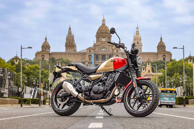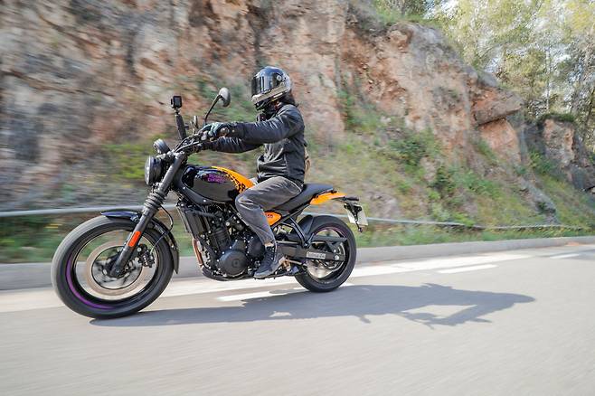 과거 로얄엔필드의 성능을 표현할 때는 클래식이라는 테마에 의존적인 모습을 보였다. 클래식은 항상 로얄엔필드의 중심을 관통하는 테마였고 로얄엔필드도 굳이 그 틀을 벗어나려 하지 않았다. 하지만 이번에 타본 게릴라 450은 클래식이라는 프레임을 벗겨 볼 필요가 있다. 꽉 차고 팽팽한 느낌이 드는 다부진 차체, 앞뒤 17인치가 적용된 전형적인 로드스터 바이크. 이미 평균적인 도로흐름을 거뜬히 상회할만한 출력을 갖추었고 쉽고 편하면서 안정적인 느낌은 이 바이크가 히말라얀에 뿌리가 있음에 누리는 혜택이다. 이렇게 이야기하면 자칫 단조로운 주행 특성을 상상할 수도 있겠지만 엄연히 쿼터들과 경쟁해야 하는 모델이니 만큼 민첩함과 재미까지 알뜰히 챙기고 있다.