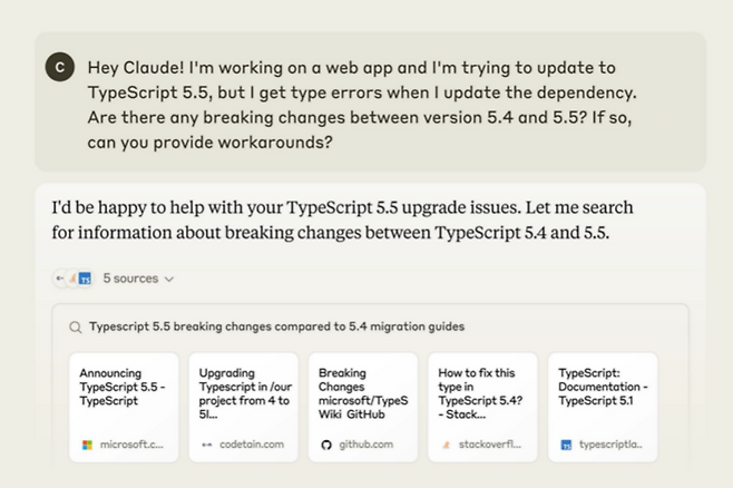 웹 검색 기능을 출시한 앤트로픽은 오픈AI의 챗GPT, 구글의 제미나이, 미스트랄의 르 챗을 포함한 대부분의 AI 기반 챗봇과 동등한 기능을 제공하게 됐다.