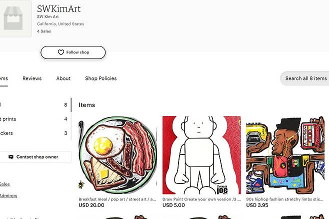 그는 'SWKim'이라는 이름으로 카툰 계정을 운영하는 건 물론, 온라인 플랫폼을 통해 자신의 그림을 판매하고 있기도 합니다.