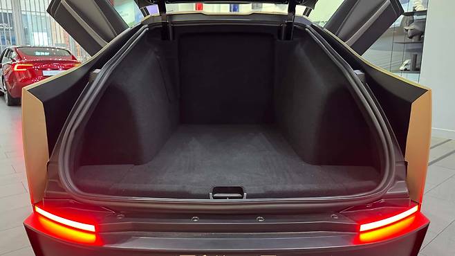 터치스크린보다 흥미로운 것은 시트다. 사이버캡은 2인승으로만 제공된다. 택시로서 대부분의 운행이 1-2인 탑승을 기준으로 할 것이라는 예상 때문이다. 시트는 몸을 감싸는 버킷 형이 아닌 넓고 평평한 등받이를 가진 형태다. 자동차 시트보다는 가정용 소파에 가깝다. 도심에서만 운행될 사이버캡은 급격한 가속이나 코너링에 대비한 측면 지지가 필요하지 않기 때문이다