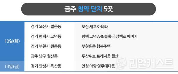 부동산인포에 따르면 6월 2주 전국에서 신규 청약 및 입주자를 모집하는 곳은 5곳, 총 1899가구로 집계됐습니다(총 가구 수 기준).