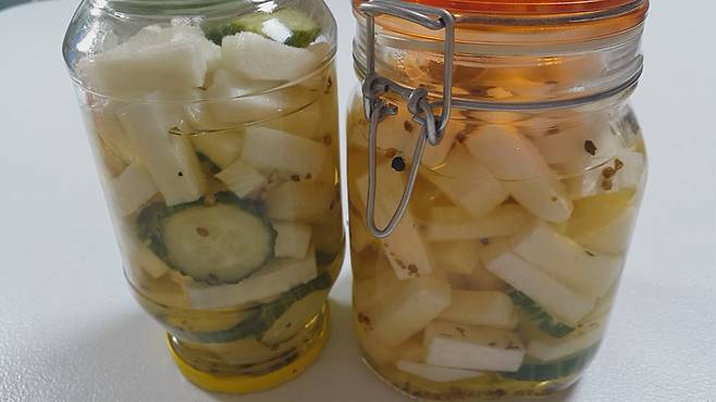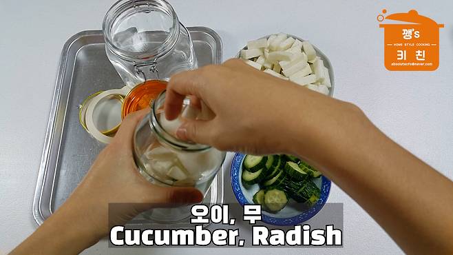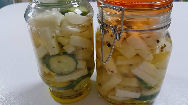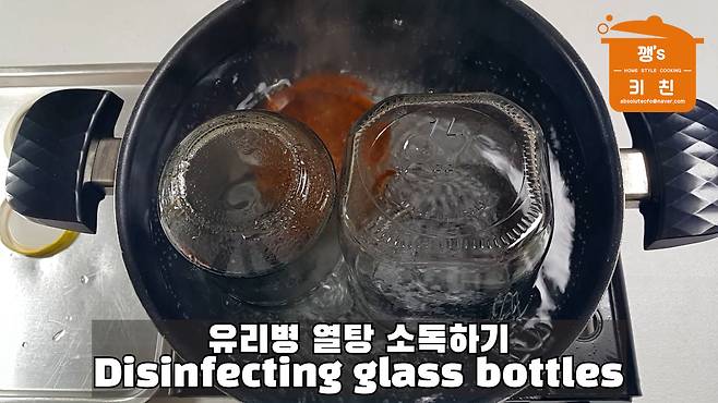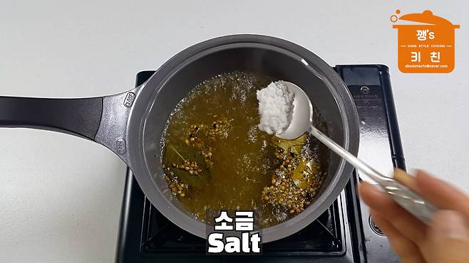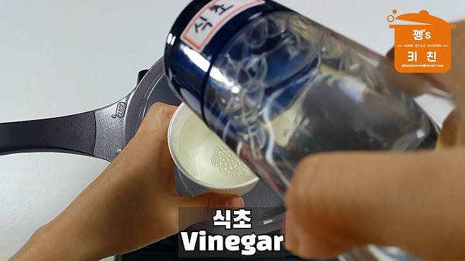 냄비에 물3컵, 식초 2컵, 설탕 1컵,