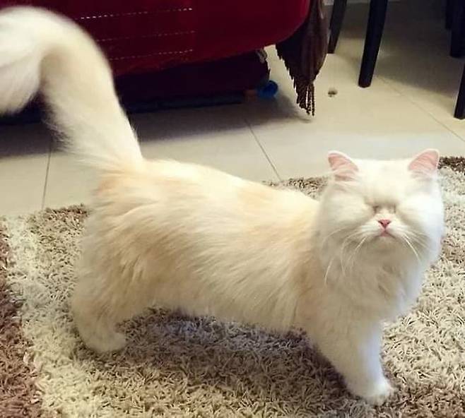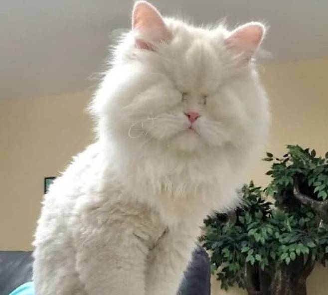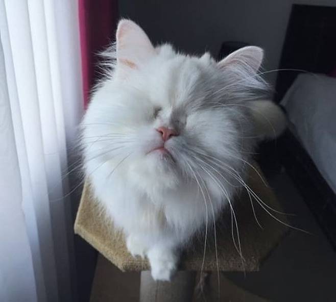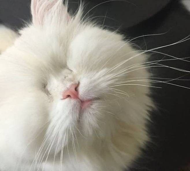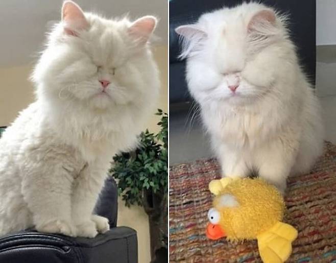 비록 앞을 볼 수는 없게 되었지만 고양이 모트는 여전히 사랑스럽고 귀여운 매력을 잃지 않았습니다.