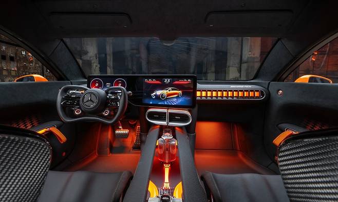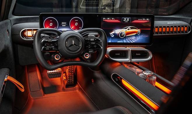 이와 함께, 스티어링 휠은 AMG ONE 차량과 유사하게 직사각형에 가까운 형태로 양쪽에 수평 스트럿이 배치돼 모터 레이싱 감각을 살렸으며, 실내에 적용된 스포티한 체크무늬 또한 모터스포츠를 연상시킨다.