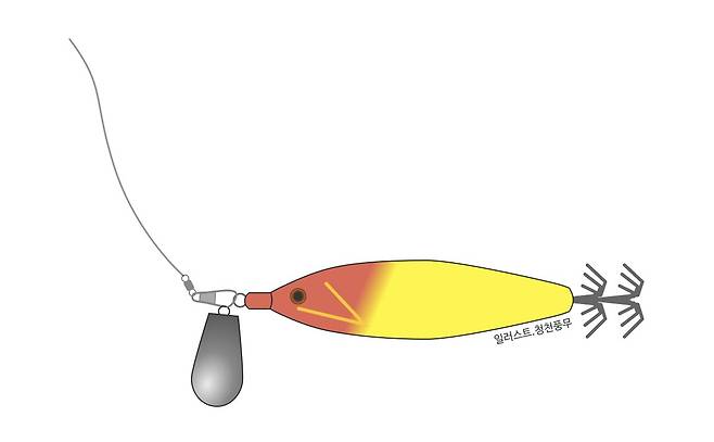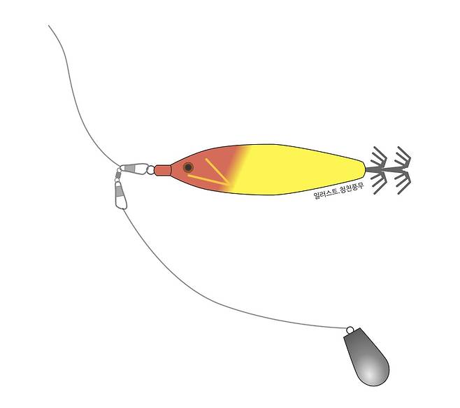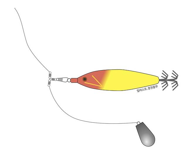 싱커와 에기를 같이 세팅하는 방법입니다.