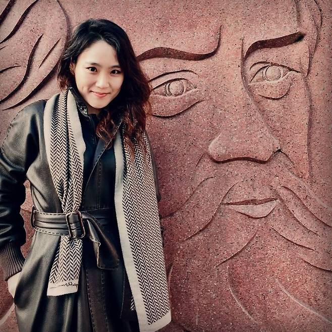 사진 속 장한나는 브라운 계열의 톤다운된 가죽 롱코트에 와이드 벨트를 매치해 허리를 강조하며 우아한 실루엣을 연출했다. 코트 위에 무심하게 걸친 헤링본 패턴 머플러는 차가운 북유럽의 공기 속에서도 따뜻함과 클래식한 멋을 더한다. 어깨선에 힘을 준 레더 소재는 그녀의 프로페셔널한 이미지와 자연스럽게 어우러지며, 투박한 질감의 붉은 석조 부조 앞에 서서도 존재감을 잃지 않았다.