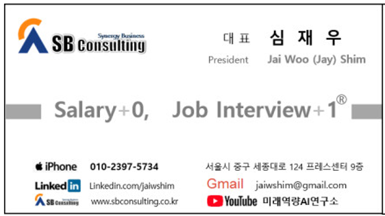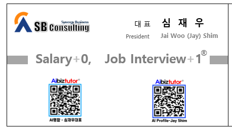 AI명함에 대해 더 자세히 알고 싶거나, AI명함을 제작하고자 한다면 "에스비컨설팅(대표 심재우)"에 문의하세요. AI명함은 디지털 시대의 새로운 네트워킹 도구로, 글로벌 비즈니스와 소통의 미래를 열어드릴 것입니다. AI명함을 통해 개인 홍보와 브랜딩, 그리고 기업의 비즈니스의 경쟁력을 높이세요!