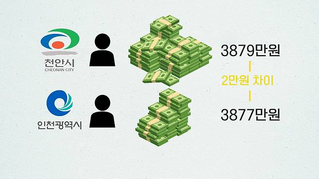 그럼 천안 사람들이 인천 사람보다 잘 사느냐, 그건 좀 섣부르다. 2022년 근로소득 연말정산을 보면, 천안은 1인당 3879만원, 인천은 3877만원으로 꼴랑 2만원 차이다.천안 사람 각자가 만드는 돈은 많을지 몰라도 버는 돈은 별 차이 없단 것.