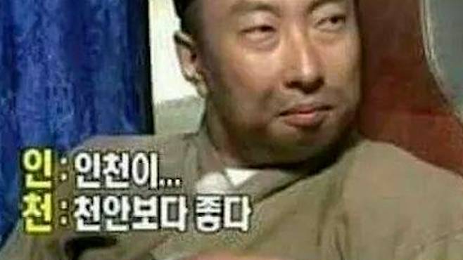 이 화면을 보라. 국민예능 무한도전에서 N행시 장인 박명수가 인천으로 2행시를 짓고 있다.‘인천보다 천안이 좋다’고 했다가 반응이 안 좋으니