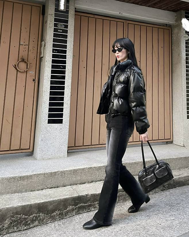 얇은 유광 패딩은 딱 지금 같은 간절기 시즌에 입기 좋고, 아우터 하나만으로도 힙한 무드가 살아나요.