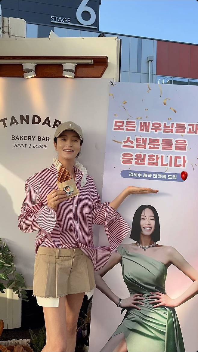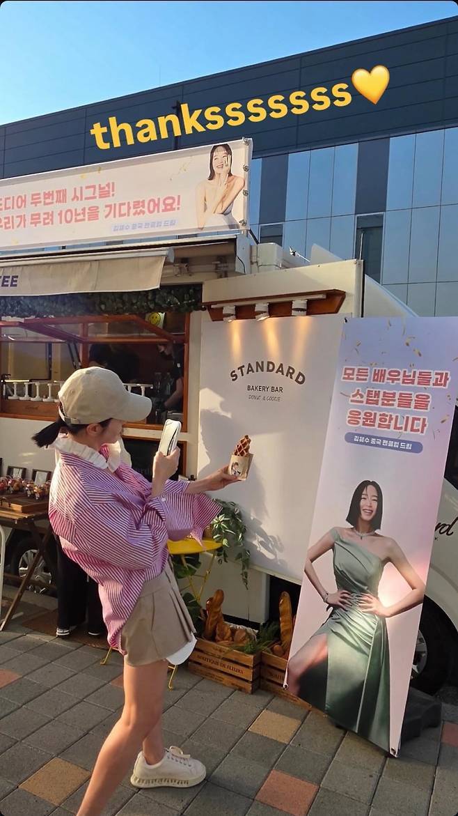김혜수가 오랜만에 돌아온 ‘두 번째 시그널’ 촬영 현장에서 팬들의 커피차 응원에 환한 미소로 화답했습니다.