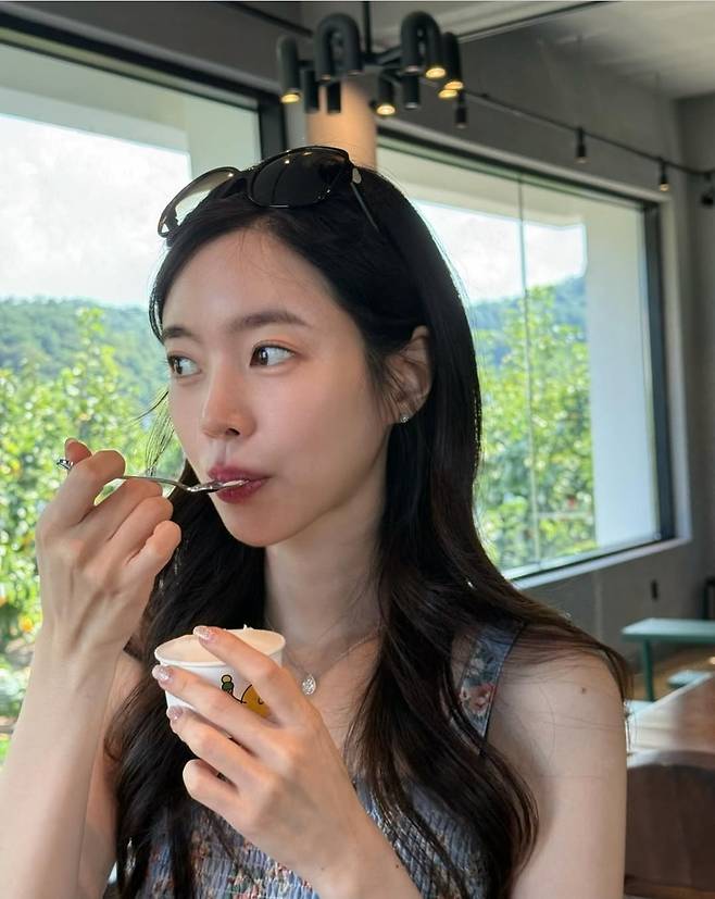 아이스크림을 들고 환하게 웃는 모습에서는 소녀 감성과 러블리 무드가 동시에 느껴지며, 마치 순정만화 속 여주인공을 연상케 했습니다.