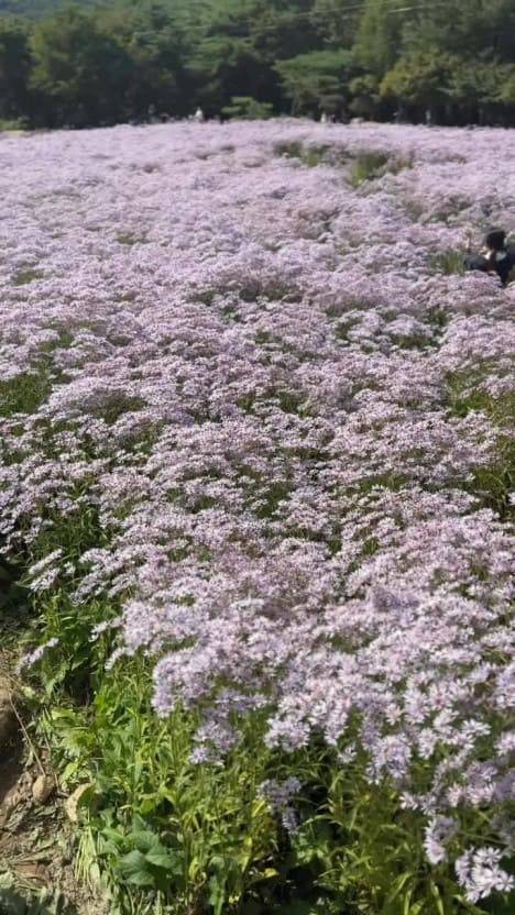 광활하게 펼쳐진 개미취꽃 군락지는 마치 높은 산 중턱에서 바라보는 듯한 비경을 선사합니다. 해가 지는 방향으로 꽃밭이 펼쳐져 있어 노을과 함께 보면 그 아름다움이 배가 됩니다.