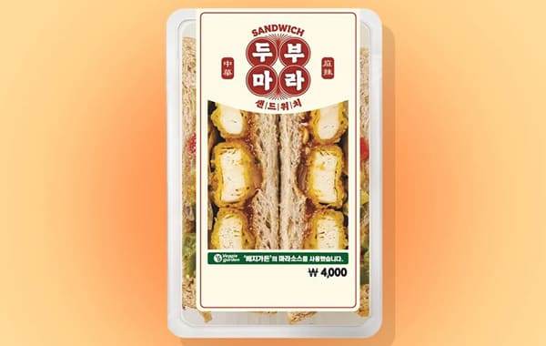 편의점 GS25는 중화요리의 풍미를 느낄 수 있는 특이한 샌드위치 제품을 출시했다. 바로 ‘두부마라 샌드위치’다. 식물성 원료를 엄격히 연구하고 있는 농심의 식물성 대체육 브랜드 베지가든의 소스를 활용한 제품이다. 바삭하면서도 쫄깃한 가공 두부 튀김을 샌드위치 안에 한가득 넣어 완성한 샌드위치로, 다소 생소한 마라와 샌드위치의 만남을 즐길 수 있는 상품이다. 편의점 판매가는 개당 4,000원이다.