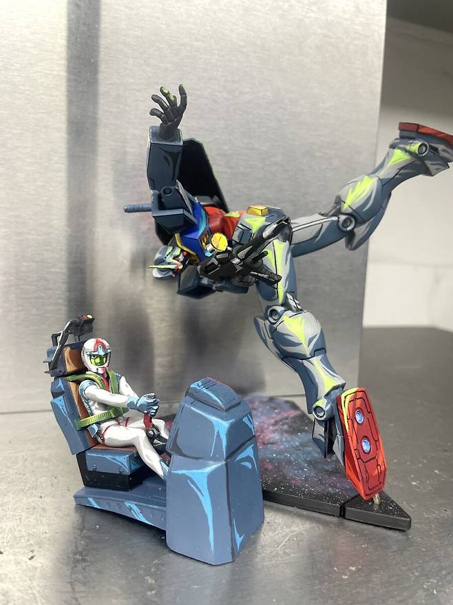 이전에 도색해놓은 아무로 콕핏 피규어가 있는데 깉이 놓으면 이쁠것 같아서 꺼내왔습니다