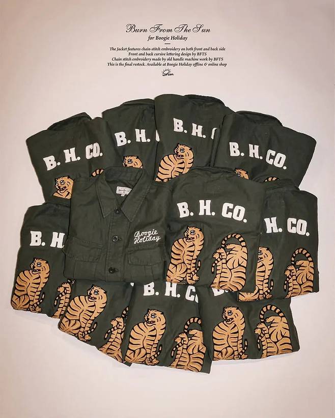 웨스턴 아메리칸 캐주얼 스타일을 제안하는 국내 브랜드 부기 홀리데이. 서부의 짙은 태양이 연상되는 의류들에 다양한 수를 놓았고, 시즌별로 발매와 동시에 품절되며 많은 사랑을 받았던 제품입니다.