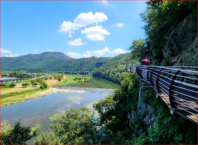 무엇보다 특별한 점은 무장애 설계라는 것. 휠체어나 유모차도 불편 없이 강변 절벽의 절경을 즐길 수 있도록 만들어졌습니다. 누구에게나 자연은 평등하게 열려야 한다는 가치를 담은 길이지요.