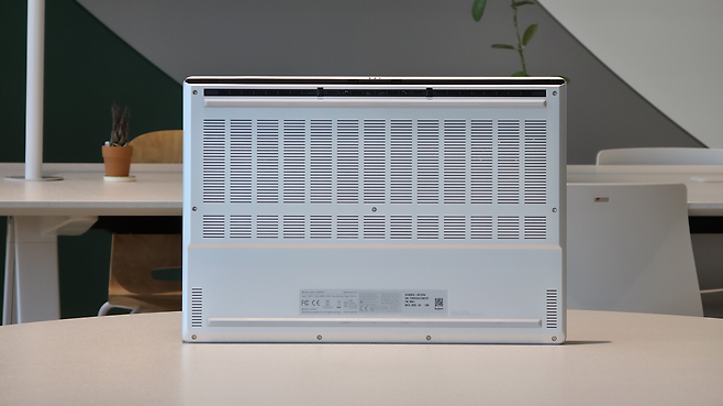 키보드도 단순한 입력 장치가 아니다. 공기 유입 경로로 활용되며, 쿨링 효율까지 끌어올린다. 듀얼 히트싱크는 통풍구 가까이에 배치되어 내부 열을 빠르게 외부로 배출하고, 베이퍼 챔버는 전원부를 포함한 메인보드 약 44% 영역을 덮으며 넓은 면적을 활용해 열을 고르게 분산시킨다. 이는 일반적인 히트파이프 방식보다 훨씬 더 효율적인 구조다.