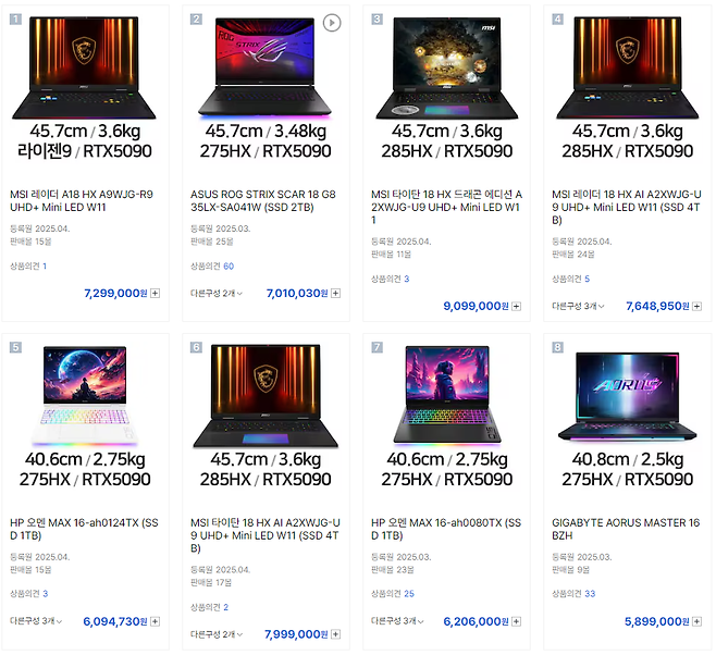 요즘 RTX 5090 탑재 노트북 중엔 게이밍 해상도나 퍼포먼스가 더 높은 제품도 있다. 하지만 대부분 3kg이 넘는 무게에 사실상 휴대는 불가능, 책상 위 ‘시즈 모드’ 전용이다. 무릎 위? 가방 속? 그런 건 포기해야 한다.