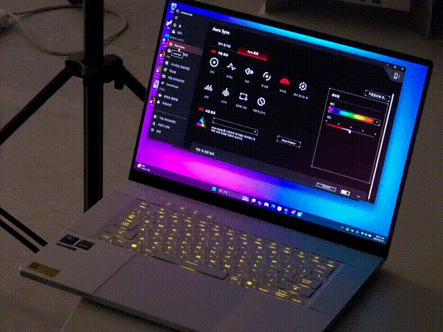 상판에는 '슬래시 라이팅'이 적용됐다. 공상 과학과 현대 미술에서 영감을 받은 대담한 라인 디자인으로, Zephyrus만의 정체성을 강조하는 요소다. 15가지 사전 설정 애니메이션으로 커스터마이징이 가능하며, 알림이나 소닉 매치 모드와도 연동돼 실용성과 개성 모두를 챙겼다.