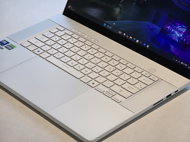 그리고 진짜 중요한 건, 키보드다. 제피러스 G16의 키보드는 부드러운 타건감을 구현하면서도 손맛을 놓치지 않았다. 1.7mm의 깊은 키 트래블, 기존보다 12% 커진 키캡, 1.7mm의 넉넉한 간격 설계를 통해 자연스러운 타이핑은 물론, 오타율도 확실히 줄여준다. 내구성은 2천만 회 타건 수명으로 검증됐고, 30dB 저소음 설계 덕분에 밤에 게임을 해도 눈치 볼 일 없다. AURA Sync? 당연히 지원한다.