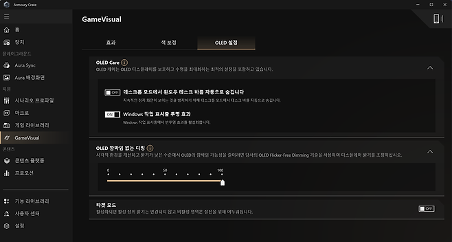 하지만 이 제품에는 그런 걱정을 줄여주는 ASUS만의 OLED Care 기술이 탑재됐다. 자동 픽셀 리프레시, 픽셀 시프트, 밝기 조절 등 다양한 보호 기능을 통해 장시간 사용에도 번인 발생 가능성을 최소화한다.