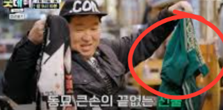 당연히 명품인줄 알았던 초록색 점퍼가 사실은 정형돈이 지디를 위해 동묘에서 29,000원 주고 사온 나이키 점퍼라고.