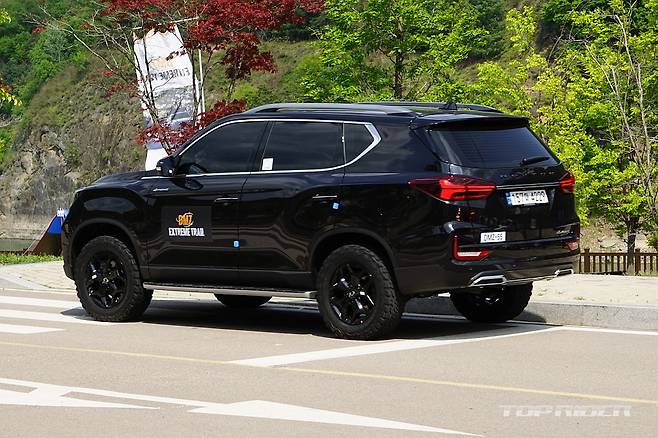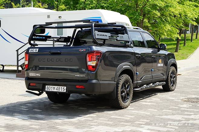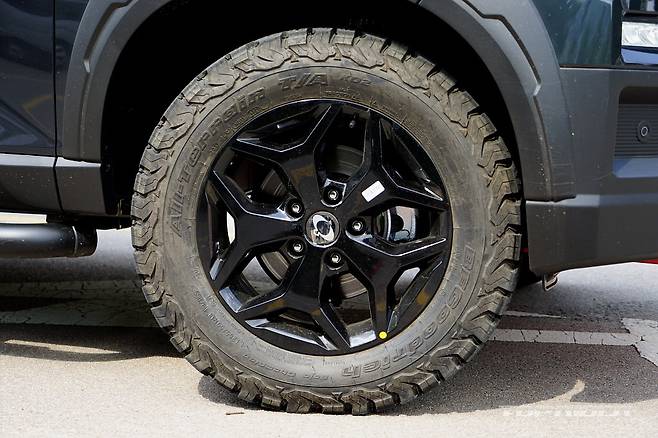 시승차는 험로 주행을 위해 18인치 휠과 올터레인 타이어로 교체된 상태다. 터프한 분위기의 픽업트럭에는 반짝이는 대구경 휠보다 이런 설정이 어울린다. 온로드 주행시 주행감각도 의외로 나쁘지 않는데, 타이어 특성상 컴파운드가 부드러워 예상보다 그립이 좋은 편이다.