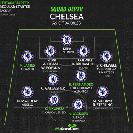 후스코어드닷컴은 첼시의 확고한 주전으로 잭슨, 은쿤쿠, 엔조 페르난데스, 제임스 4명을 선정했다. 반면 루카쿠, 지예흐, 오도이, 찰로바 등은 팀을 떠날 선수로 분류했다.
