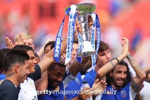 [첼시의 공격수 은쿤쿠와 잭슨, 첼시가 영입한 수비수 디사시, 프리미어리그 섬머시리즈 우승을 차지한 첼시. 사진 = 게티이미지코리아/첼시/후스코어드닷컴]- ⓒ마이데일리(www.mydaily.co.kr). 무단전재&재배포 금지 -