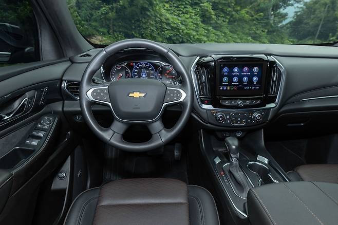 그러나 올해 페이스리프트 신 모델로 거듭난 트래버스는 기존의 단점을 깔끔히 메웠다. 4.2인치 작은 모니터를 썼던 계기판은 8인치 디스플레이로 교체했다. 센터페시아 중앙 모니터는 무선 카플레이를 지원한다. 성능 떨어지는 순정 내비게이션 대신, 스마트폰 티맵을 손쉽게 띄울 수 있어 만족감이 높다. 이외에 스마트폰 무선충전 패드와 앞좌석 3단계 통풍시트 등, 화려하진 않지만 꼭 필요한 기능은 대부분 갖췄다. 단, 천장까지 검은색 소재로 감싸, 실내 분위기가 다소 무거운 건 아쉽다.