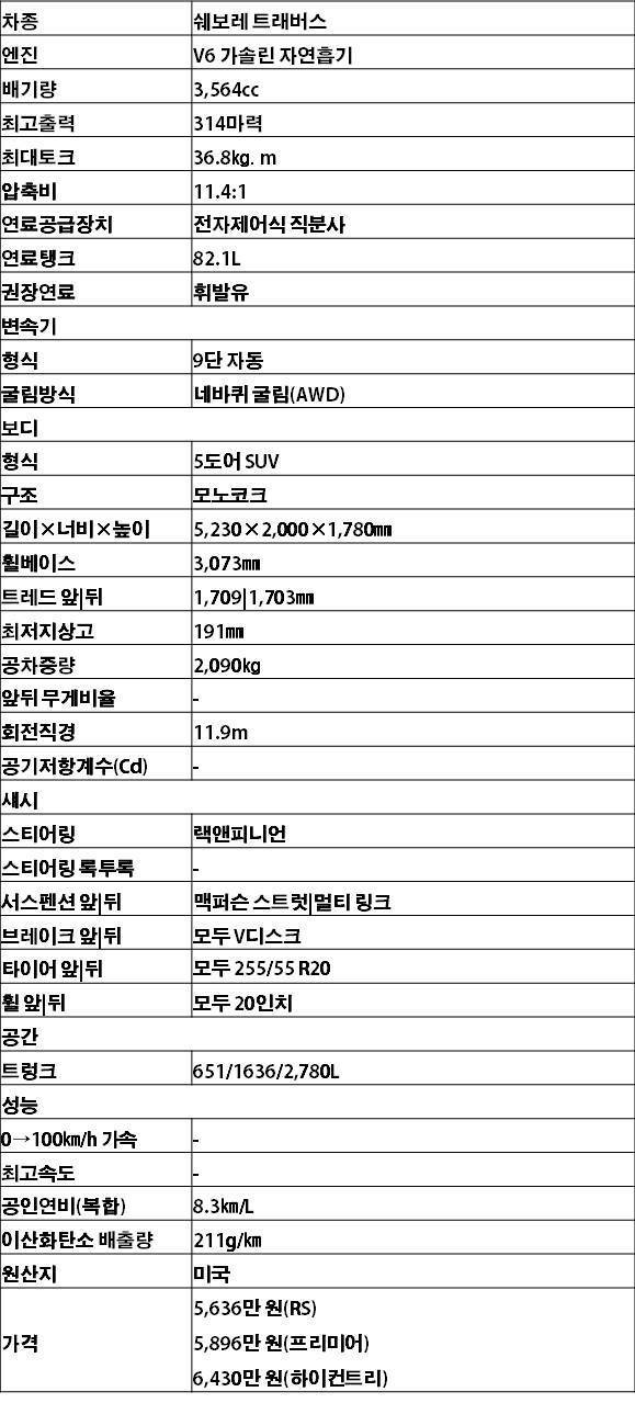 소형 트레일블레이저부터 초대형 타호까지, SUV 풀 라인업을 완성한 쉐보레. 주요 SUV 4인방을 두루 경험할 수 있는 시간이 생겼다. 우리 팀은 그중, 탄탄한 주행질감으로 무장한 막내 ‘트블’과 부분변경 치른 대형 SUV 트래버스를 시승했다.