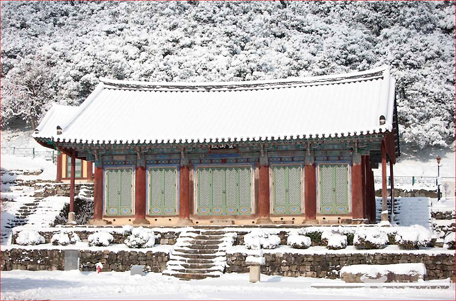 겨울 : 눈 덮인 산사와 적막한 풍경 속에서, 고요히 마음을 내려놓을 수 있는 시간이 주어집니다.