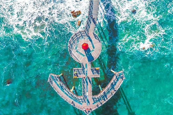 포항 북구 청하면 이가리에 위치한 이가리 닻 전망대는 마치 바다 위를 걷는 듯한 착각을 일으키는 포토 명소다.
